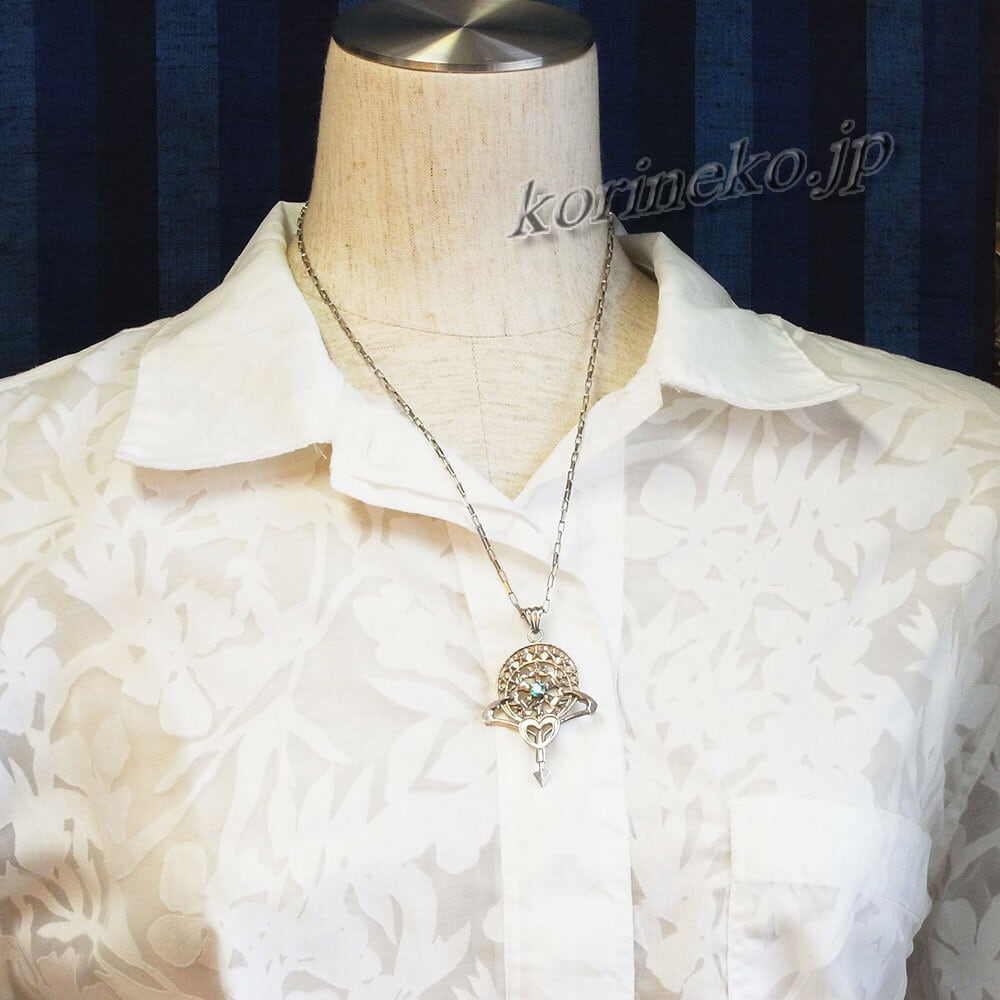 ミュシャをオマージュしたアールヌーボーデザインのペンダント。